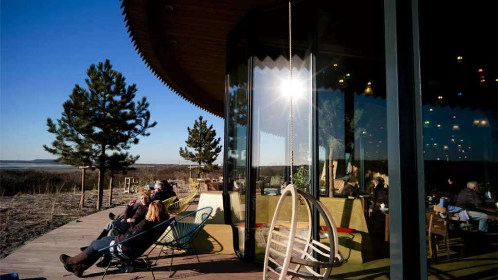 Het gebouw bestaat uit een cafรฉ/restaurantgedeelte, de keuken en een opslagruimte. Verder is er een buitensportfaciliteit aan de achterzijde en op het dak staat een uitkijktoren. De uitki...